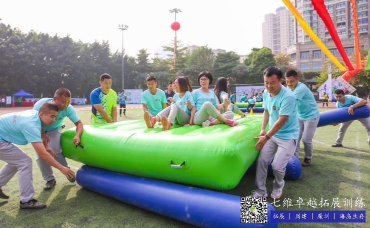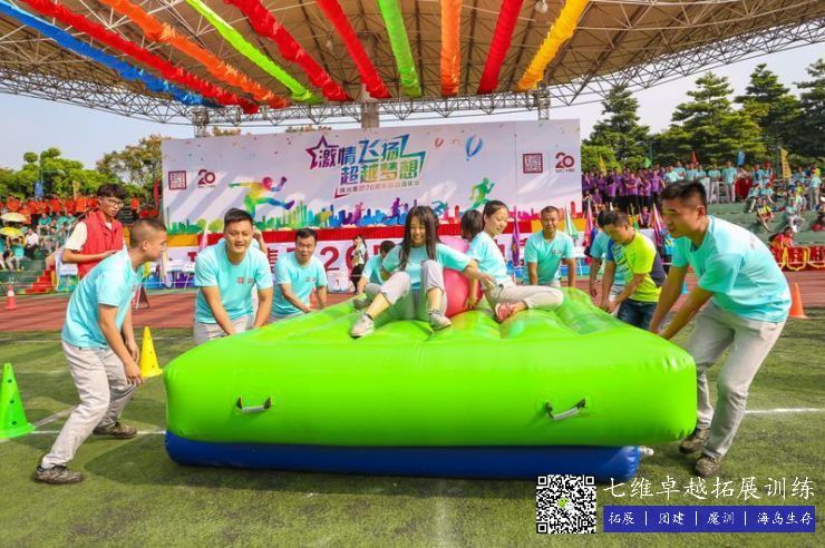 【比賽方(fāng)法】每隊12人參(cān)賽,分別位於賽道起點處準備,首先由4個人坐在充氣墊子上環抱一個(gè)大球,再由4名隊員在充(chōng)氣(qì)墊子的四個角落齊心協力運(yùn)送坐在充氣墊子上的4名隊員前行(充氣墊(diàn)子(zǐ)不可以著地),最後由4名隊員負責在地上擺充氣柱,協助充氣墊子一直向前滑動,直到充氣墊子成功將墊(diàn)子上(shàng)的4名隊員運送到終點(diǎn)比(bǐ)賽結束,用時越少排名越前。