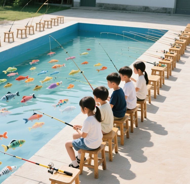 道具說明: 5*3水(shuǐ)池+20小凳子+20套釣魚杆+若幹假魚