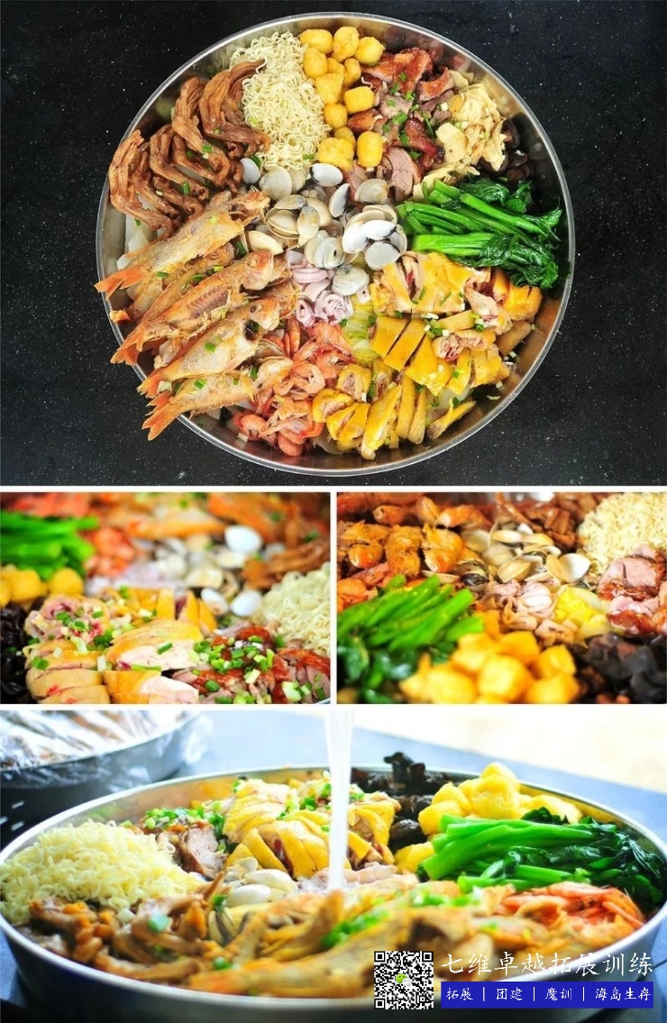 雞,鮮魚,海蝦(xiā),帶子(zǐ),海魚,鵝掌,香茹,鴨,大白菜,蘿(luó)卜,腐(fǔ)竹,豆付泡,西蘭花木耳,粉絲!(另外提供米飯,一次性碗(wǎn)筷,調料等)