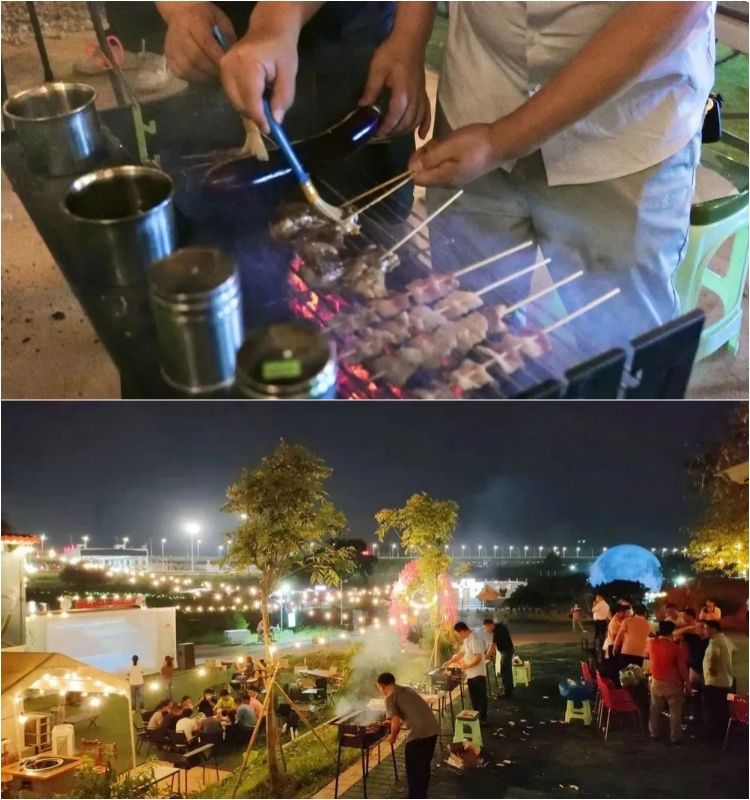 如果你覺得坐在一起吃雞不夠歡樂,那麽你可以點一份燒烤套餐,在(zài)蓮塘大秀場,一邊燒烤(kǎo),一邊K歌,欣賞著美妙的夜景,沐浴著微風,與朋友舉杯(bēi)共飲,豈不快(kuài)哉!