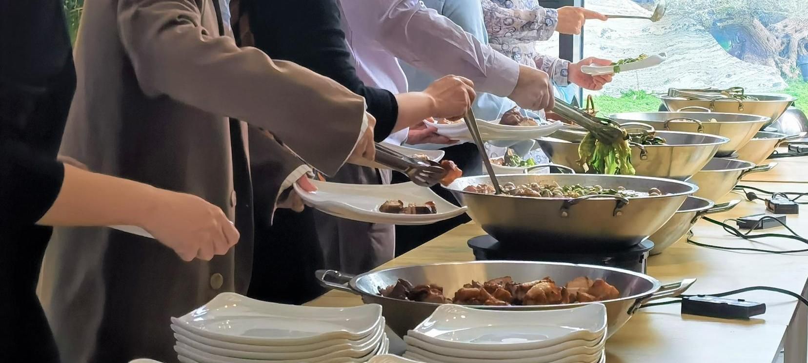 麵積600m²,可容納500-1200人,配備LED大屏幕、音響、話筒、中央(yāng)空調舒適(shì)高(gāo)檔桌椅、可移動桌椅,可提供自助餐、個人餐、圍(wéi)餐(cān)、食材新鮮、美味豐富