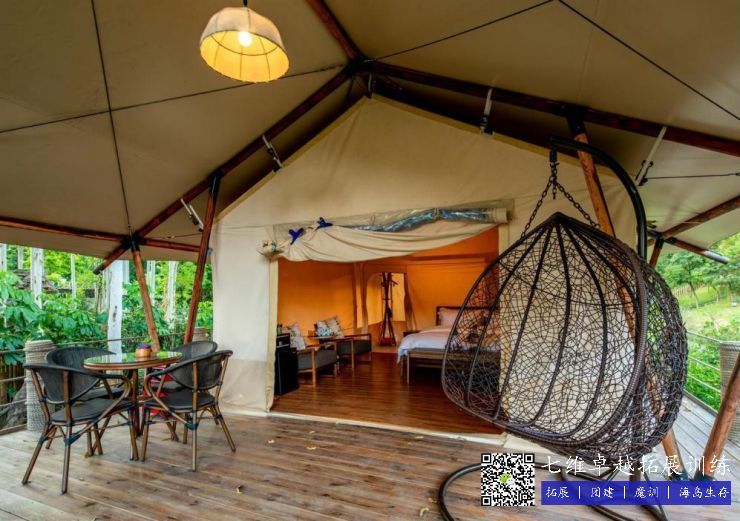 喜馬拉雅帳篷(péng)房(fáng)安在半坡上,設計采用了新穎(yǐng)的帳(zhàng)篷簡約結構。分為大床房和親子房。