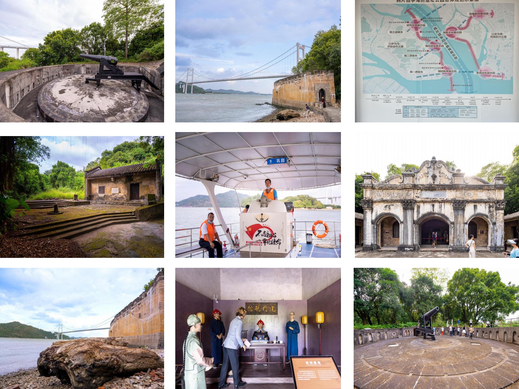 虎門炮台遺址分(fèn)布在東莞(wǎn)虎門(mén)(三座)和南(nán)沙(shā)區內(七座),目前是國家級文物保護單位(wèi),上橫檔島全島(dǎo)都被列入保(bǎo)護範圍。1982年,南沙虎門(mén)炮台(tái)被國務院公布為全國重點文物保護單(dān)位。2010年2月列為廣州市愛國主義教育基地之一。2019年7月列為廣東省愛國主義教育基地。上下橫檔島:上、下橫檔島位於珠江口虎門(mén)水道主航道湍急江水中,兩島相距約650米,因上攔珠江洪水,下攔南海海潮,故稱上、下橫檔島。上橫(héng)檔炮台建於清康熙五十六年(nián)(1717年),全島(dǎo)域麵積7.9公頃,海拔高度為27米。上橫檔島炮台群和其他(tā)工事遺(yí)址的(de)格局保存較完整,尚(shàng)存有多處文物及文物遺址,其(qí)中鴉片戰爭時期(qī)的文物遺址有橫檔台遺址、橫檔月台(tái)遺址、永安炮台遺址、火藥庫遺址。此外,島上的官廳稅史博物館已成為愛國主義教育主陣地。上橫檔島(dǎo)是(shì)我國海防遺址中規模最大、保存最(zuì)完整的軍事防禦設施,是“海上(shàng)絲綢之路”最(zuì)具影響力的起點(diǎn),在廣州商貿發展和近(jìn)代軍事史上有著特殊的意義,屬於國家級(jí)文物保護(hù)單位(wèi)。