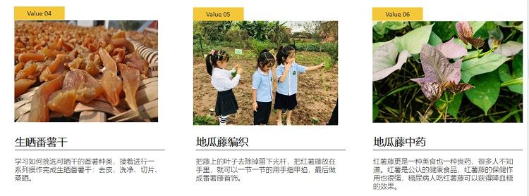 以”番薯“為研(yán)學文化符號所打造的番(fān)薯嶺長廊,通過(guò)介紹新造番薯的由來、番(fān)禺(yú)地(dì)區的風土特產以(yǐ)及番(fān)薯品種和番(fān)薯文化等內容,把以番薯為核心的文化(huà)符號發揚光大,不僅可以了解豐富的農耕知(zhī)識,還能了解廣州番(fān)禺的風土文化,長廊配(pèi)有(yǒu)學(xué)習資料,可以(yǐ)讓(ràng)孩子們收獲頗豐。