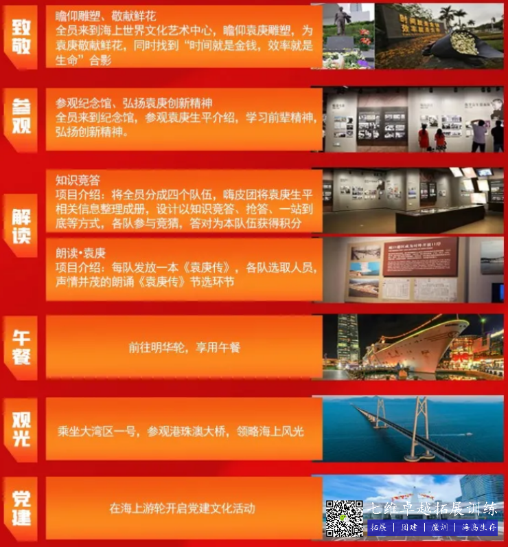 本次(cì)活動是在蛇口及港珠澳(ào)海域範圍內開展的一日黨建活動之旅。上午在卓越www.17c工(gōng)作人員的帶領下,以改革開放(fàng)試驗田“蛇口模(mó)式”的(de)探索創立者一袁庚先生的傳奇人生為主線(xiàn),了解蛇口的(de)曆史(shǐ)發展和變遷、人文地理知識,感受“改革先(xiān)鋒”袁庚的積極樂觀、奮鬥進(jìn)取的精神。活動當天下午,參與者將(jiāng)登上中國首艘(sōu)綜合性高端灣區遊船“大灣區(qū)一號”,漫遊海上,穿越港(gǎng)珠澳(ào)大橋,蛇口與袁庚主題分享交流會也將在船上進行。活動內容結黨建文化,豐富有趣,形式新穎;通過-整天的文史地之旅(lǚ),為參與者帶來海陸雙重形式的黨建文化體驗,重塑大家對蛇(shé)口人文曆史及建設的認識。