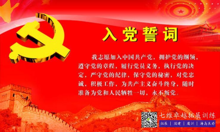 項目介紹:全(quán)員(yuán)在教(jiāo)練的帶(dài)領(lǐng)下,在黨(dǎng)旗下宣(xuān)讀入黨誓言。