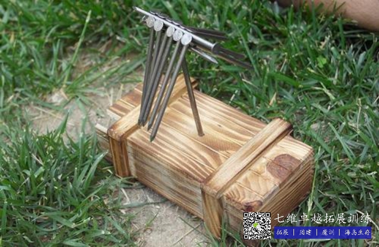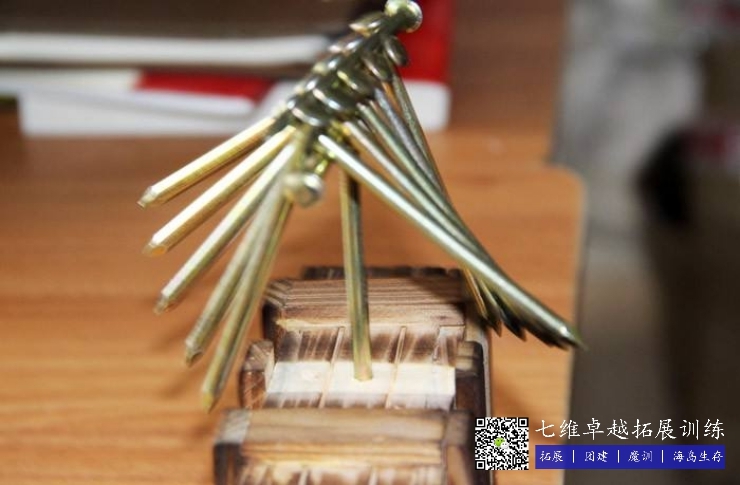 13個釘子,其中一個定(dìng)在地(dì)上(shàng),其餘12根(gēn)釘子在(zài)不接(jiē)觸其他(tā)物體的(de)狀態下,放在釘帽上。