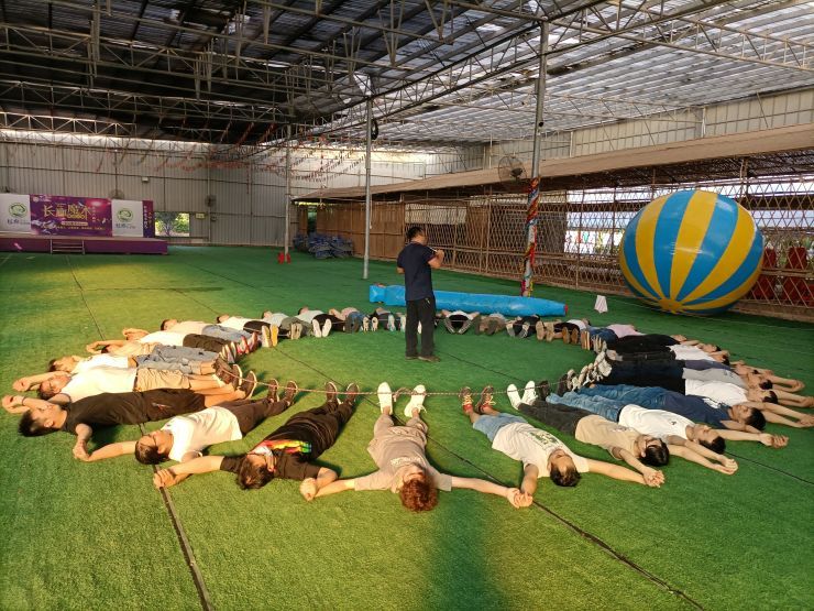 活(huó)動開始,為了幫學員們(men)放鬆心情、活動筋骨教練部精心地為大家準備了熱身準備:首(shǒu)先,大(dà)家(jiā)圍成了一個大圈,然後每個人(rén)向同一個方向轉,並雙手搭(dā)在前邊的人的肩膀上(shàng),接著便開始給前麵的人按摩(mó)肩膀。在此期間,有的人互相嫌棄著對方按的過輕過重,歡笑聲接連不(bú)斷。