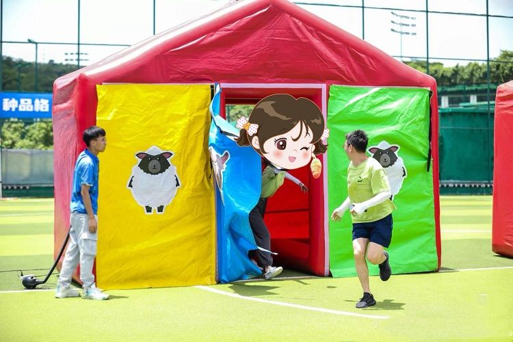 項目說明 :兩個(gè)隊伍互相(xiàng)PK(攻防角色),攻方每次派(pài)一名隊員去掀開3個門簾(內有2兔1狼)的任意1個如裏麵是狼就跑(逃跑過程中被抓住(zhù)扣1分),如是兔子就占領房(fáng)子(得1分)最後匯總得分進行名(míng)次排列